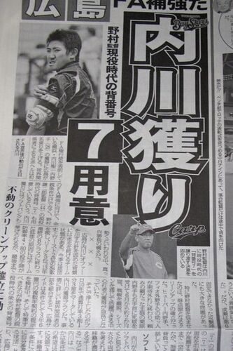 我が目を疑った!中国新聞によると横浜の内川が国内FA権の行使を申請したのを受け、広島カープが初めてFA宣言選手の獲得に乗り出す可能性が強まったと報じている。これは中国新聞ではないが野村監督がつけていた背番号7を用意しているとまで。普段はほと…