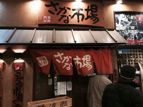 さかな市場 広島駅北口店。 広島駅北口からターミナルホテルの方向に歩いて行く途中にある居酒屋。 ほとんど広島駅構内と言っても良い立地なんだけどけっこう本格的な海鮮料理が食べられるので人気がある。 外から見るのと違って店内はかなり広い。 生け簀が…