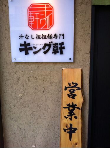 広島市中区大手町っていえばもうオフィス街。 サラリーマンが多く行き交う裏通りに汁なし担担麺専門キング軒がある。 比較的新しい汁なし担担麺の専門店。 なぜか店の前にこんなものが・・・ このときはなかったがもしかしたら行列ができた時の暖房なんだろ…