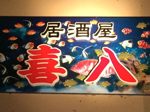 高知県四万十市中村天神橋。 ここにある居酒屋 喜八。 ネット上の噂じゃとっても人気のあるお店だそうで数ヶ月も前から予約してやってきたよ。 まあどっちにしても7人の大所帯なので予約しないでは無理なんだけどね。 しかしなんていうかド派手な外観だ。 …