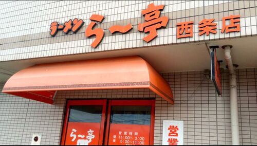 東広島市の住宅地にあるラーメン らー亭 西条店。 自分のような東広島市に詳しくない人間にとってはちょっとわかりにくい立地ではあるが店舗が何件か入っているマンションの一階なので比較的わかりやすい場所ではある。 それにしてもかなり広い駐車場を確保…
