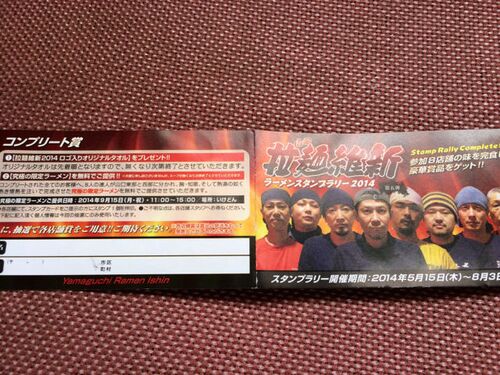 去年サボったから今年はは2年振りに山口拉麺維新2014に参加して8店舗を回ってスタンプラリーを完走した。 コンプリートカードを貰ったのだがこれにはこう書かれている。 「【究極の限定ラーメン】を無料でご提供 !! コンプリートされた全てのお客様へ。 8人…