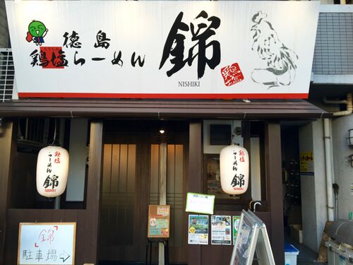 徳島鶏塩らーめん錦。 今日はクルマで夜にやってきた。 何と言っても今回の最大のトピックはお店の2軒隣に駐車場が3台確保されたことだ。 この駐車場、自分のような運転ヘタッピなヒトでも入れやすく出やすいのがいいね〜。 それともう一つ、珍しいスダチ…