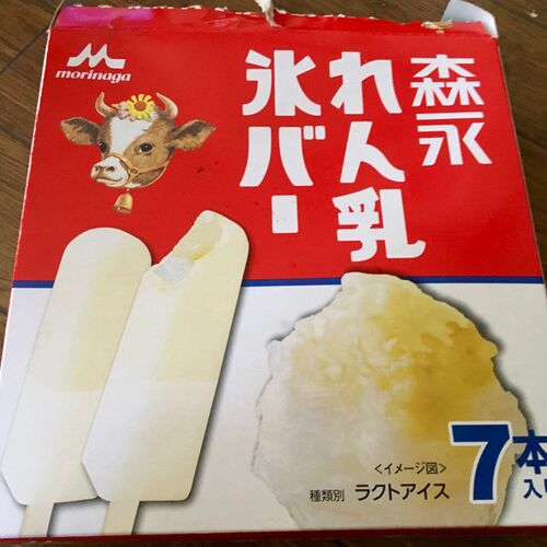森永 れん乳氷バー。 「れん乳をしっかりと使用しており、最初から最後まで「れん乳」のコクや甘さが堪能できます。また、とろりとしたれん乳入りソースを使用しているので食感も楽しめるバーアイスです。」 一本50ml×7本入りで近所のスーパーで220円程度で…