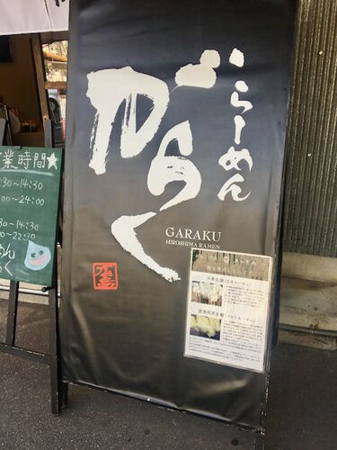 地蔵通りのがらく。 ここはつい半年前に万丈というラーメン屋だったテナントだったがなんともう東白島にあったがらくが移転オープンしていて驚いた。 店内は万丈のそのままを居抜きで使っておられるようで前回は広島らーめんを食べたので今回は店名を冠した…