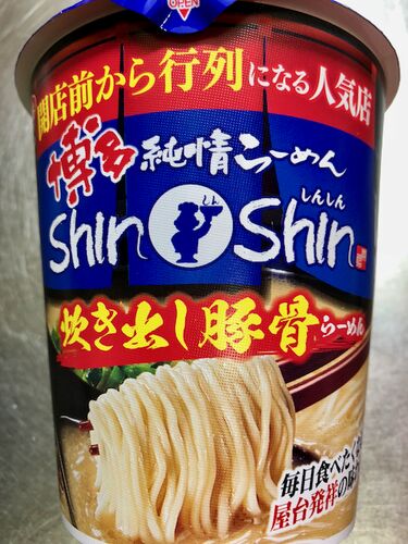 博多純情らーめん ShinShin 炊き出し豚骨らーめん。 福岡で人気の豚骨ラーメン店『博多純情らーめんShinShin』の味を再現したビッグサイズのタテ型カップめんです。 めんは滑らかでのど越しがよい細めんで、スープがよく絡みます。しなやかさがありつつも、…