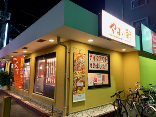 やよい軒 五日市店。 今日はさんまを食いたくてやってきた。 やよい軒 五日市店のさんまの塩焼と牛肉炒めの定食860円。 それと専用アプリのクーポンでオマケについてきたエビフライ。 牛肉炒めはけっこう甘辛い濃い味でこれ単体だと自分にはちょっと塩辛いが…