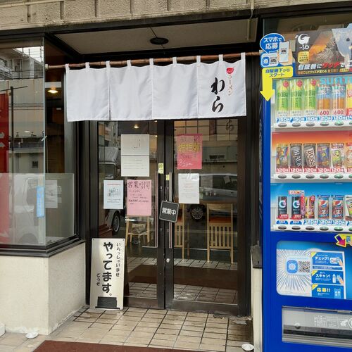 ラーメン わら 公式サイトにて担担麺がメニューに加わったと知ってやってきた。 開店時間少し前に着いてお店の前の駐車場にクルマを入れたのだがもう待ち客がいてさすがの人気店だ。 開店時間になってお店が空いたので入店するとまずは自動券売機で食券を購…