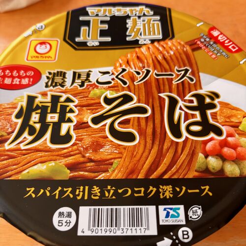 マルちゃん マルちゃん正麺 カップ 濃厚こくソース焼そば 希望小売価格 258 円(税抜価格) お湯を入れて湯切るだけで、いままでにない生麺のような食感と食べ応えを提供する革新的なカップ麺。 生麺のようななめらかな口当たりと、透明感や弾力のある食感が…