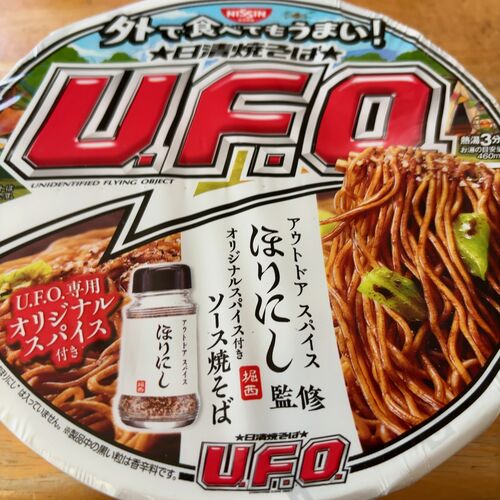 日清焼そばU.F.O. ほりにし監修オリジナルスパイス付き ソース焼そば 希望小売価格 236円 (税別) 発売日 2024年4月29日(月) 大人気アウトドアスパイス「ほりにし」監修のオリジナルスパイス付き! 豚のうまみとBBQの〆に鉄板で炒めた焼そばのような香ばしい風…