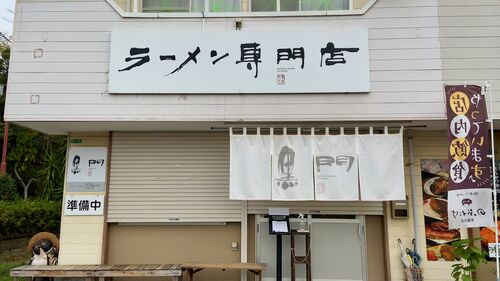 北九州高速道路を通ってやってきたのはラーメン無法松。 大きな通りに面したビルの1階に入っており店の前と横に数台の駐車場を持っている。 開店前に着いてしまったのでバイクを店舗前の駐車場に入れてガレージ奥の店舗入口前にあるベンチに座って店が開くの…
