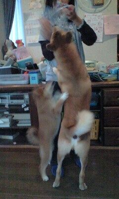 2009-11-19 朝はタイヘン(笑) 柴犬(コテツ・小鈴) まだ子犬の小鈴は1日2食、成犬コテツは1日1食なんだけどよく食べる(笑)コテツが1食だと可哀想だと娘が朝にご飯を毎日あげている。コテツだけだった以前は平和に「お座り」なんぞやらせて悠長にブランチとか洒落込んでいたが、今は小鈴参戦で一変(笑)ほとんど戦争状態。コテツは優しいのか気が小さいのかご飯を小鈴に譲ることもしばしば。まあ娘の楽しみだからこれはこれでいいのかも。