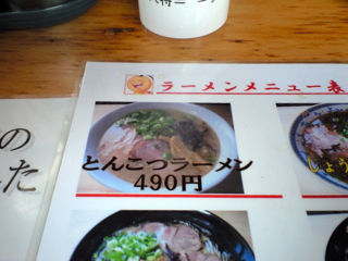 今回自分はブレンボさんの薦めもあってメニューの一番最初に掲載されているとんこつラーメン490円にした。