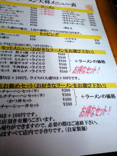これらにギョウザ・唐揚げ・カツ丼・サラダ・牛肉炒めやチャーハンとかがセットで絡むから無限の組み合わせになっちゃうのだろう。