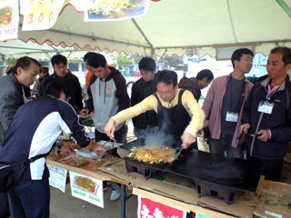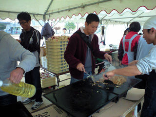 販売時間になると長い行列ができて焼きそばを焼く係のお父さんはタイヘン。