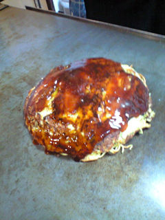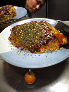 自分はコテをうまく使えず鉄板で直接食べられないので(涙)少し分けて皿にとってもらった。