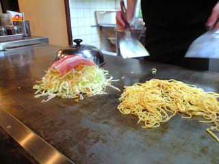 ちょっと意地悪をして関西風のモダン焼きと広島風お好み焼きを同時に注文してみた。