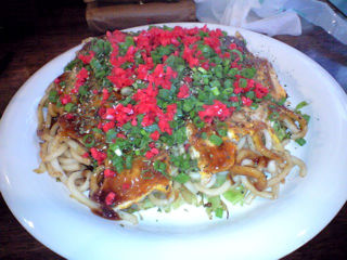 実はコレ、肉・玉・うどんっていうお好み焼き。