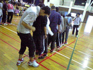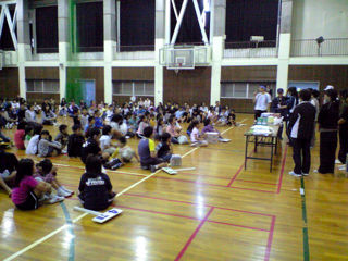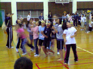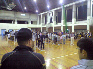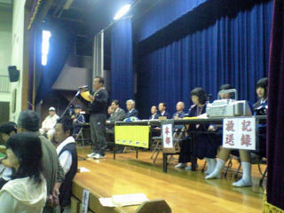 例年なら五日市南中学校のグランドで催されるのだが今年はやむを得ず体育館にて開会式と競技が行われた。