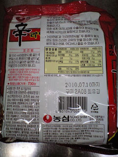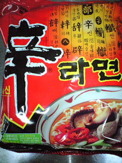 先日キムチを買いに韓国食材店にいった時にその真赤なパッケージについつい目が止まった韓国インスタントラーメン辛ラーメン。