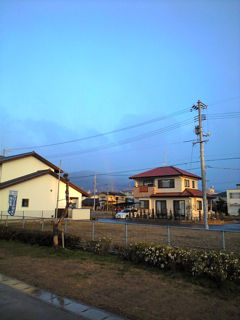 翌朝はみぞれでが降っていて虹まで見える。