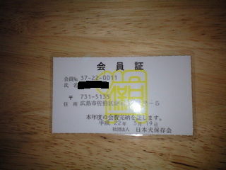 日本犬保存会会員証