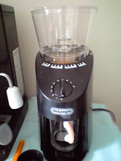 コーヒーミルでコーヒー豆をエスプレッソ用に超細かく挽いて