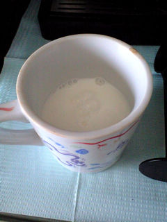 ホントはピッチャーがいいんだけど持っていないからマグカップへ1/3くらい注ぐ。