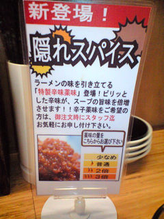 これでぐるぐるかきまぜてもうひとつテーブルに置いてある「ラーメンたれ」を少々。