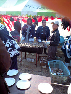 でもそんな開会式なんぞ誰も見ず、ひたすら無料の焼き牡蠣の順番を並んで待ってる。