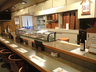 店内はいかにも寿司屋のそれでカウンターの他に小上がりがいくつかと二階はすべて座敷で宴会場もあり収容人数はかなりになると思われる。