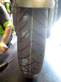 ちなみに昨日カワサキショップキティでフロントタイヤ交換した。