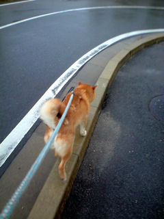 雨の日はこういうブロックの上を歩きたがる。