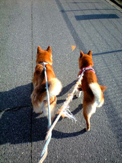 今日も二匹で機嫌良く朝晩の散歩だ。