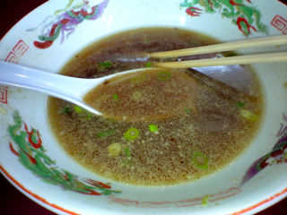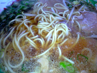 下松の牛骨ラーメンの流れを継いでおり独特の甘いスープ。