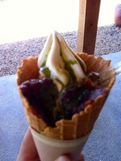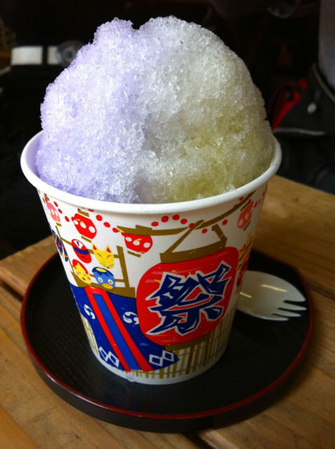 ここの面白いのはハーフ&ハーフって感じでひとつのかき氷に2種類のシロップを半分づつかけて楽しめるってコト。
