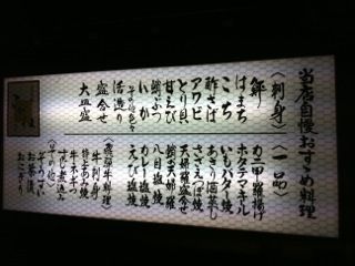いつでも新鮮で旨い魚料理が食える瀬戸内の人間はオラが地元の魚料理が最高と思いがちなのだがこのメニューはちょっとハンパない品揃えを感じる。