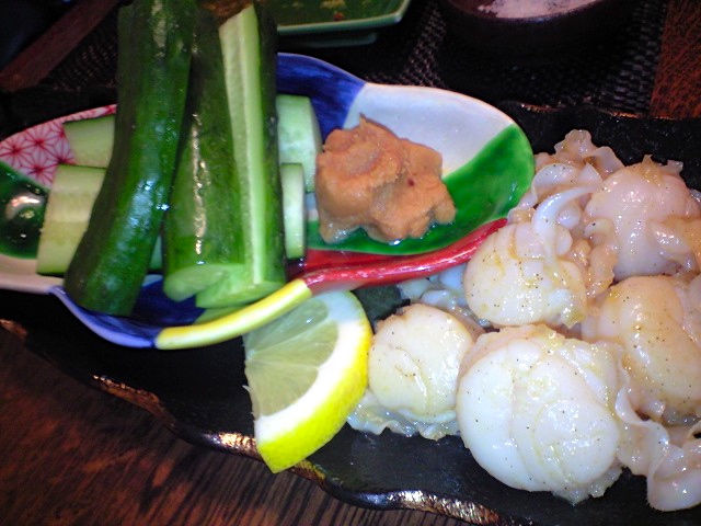 貝柱とモロキュウ。