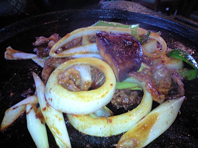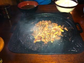 これは3人前なのだがおおきな鉄板に乗せられてじゅーじゅーいいながらおばちゃんがもってきてくれる。