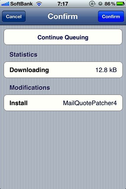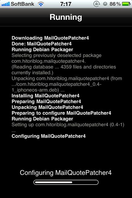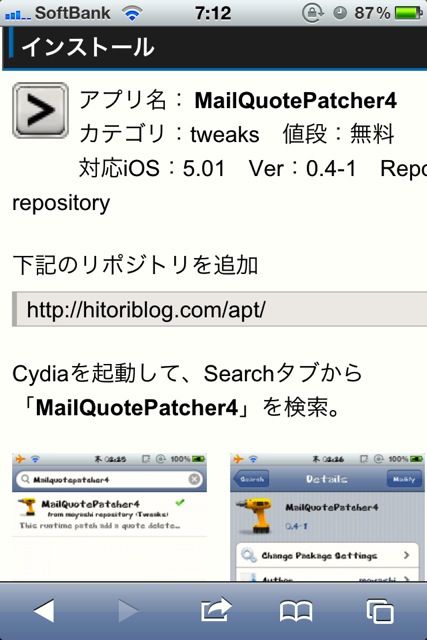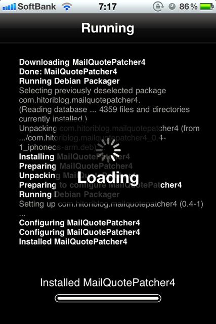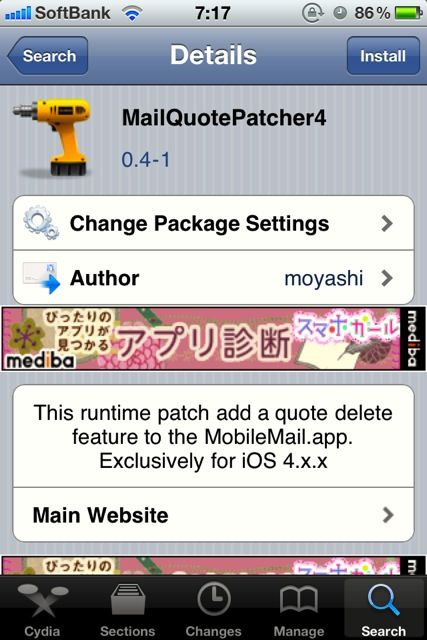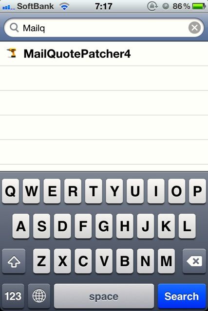 これで再びCydiaのトップ画面に戻ってこんどは「Search」画面からMailQuotePatcher4を検索。