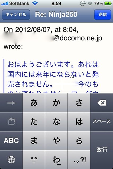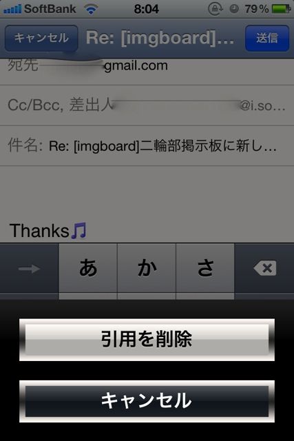 iPhoneのメールで返信しようとすると必ずついてくるコレ。