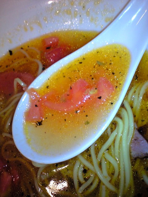 おそらくは3回目くらいの来店の自分はこの暖かいトマト拉麺にチャレンジすることにした。