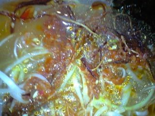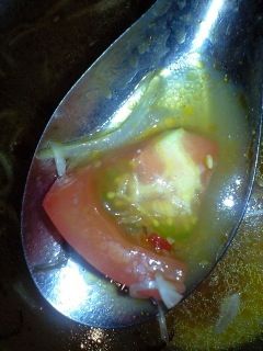基本的に鶏ベースにおそらくは魚介のたっぷり入ったスープ。