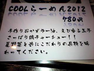 二代目もんごい亭のCOOLらーめん2012 780円。