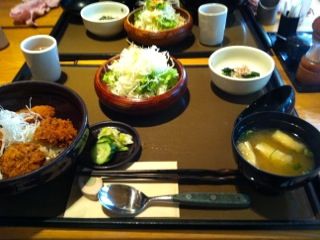 単純にご飯の上にタレがかけてあってその上にトンカツがのってるシンプルなモノ。