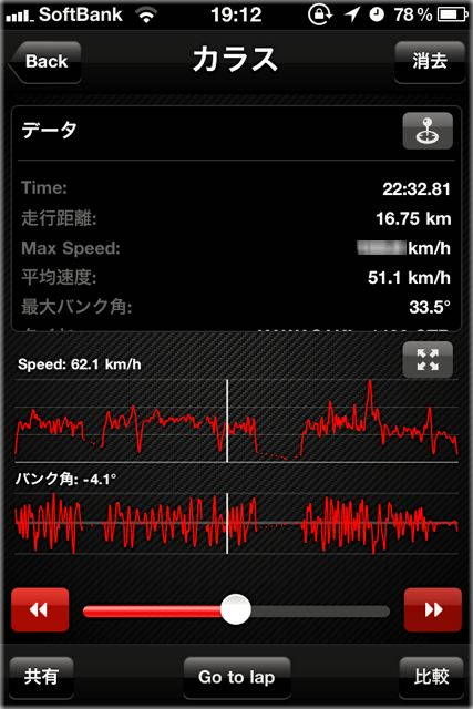 カラスを跳ねたログが生々しいこの日のデータ(笑)