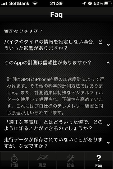 AndroidとiPhoneの両方に対応したスマートフォン用のバイク走行状態計測アプリ。