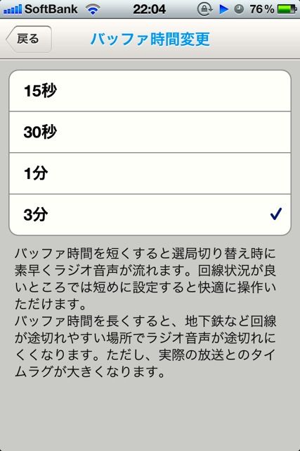 そこで設定画面からバッファ時間を最長の3分に設定する。