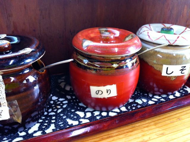 テーブルの上には通常のしょうゆの他にこんな調味料達がならんでる。