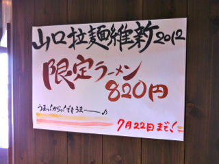 店内を見渡すと今回の山口拉麺維新2012用の限定メニューもあるようだがこの日は既に売り切れていた。